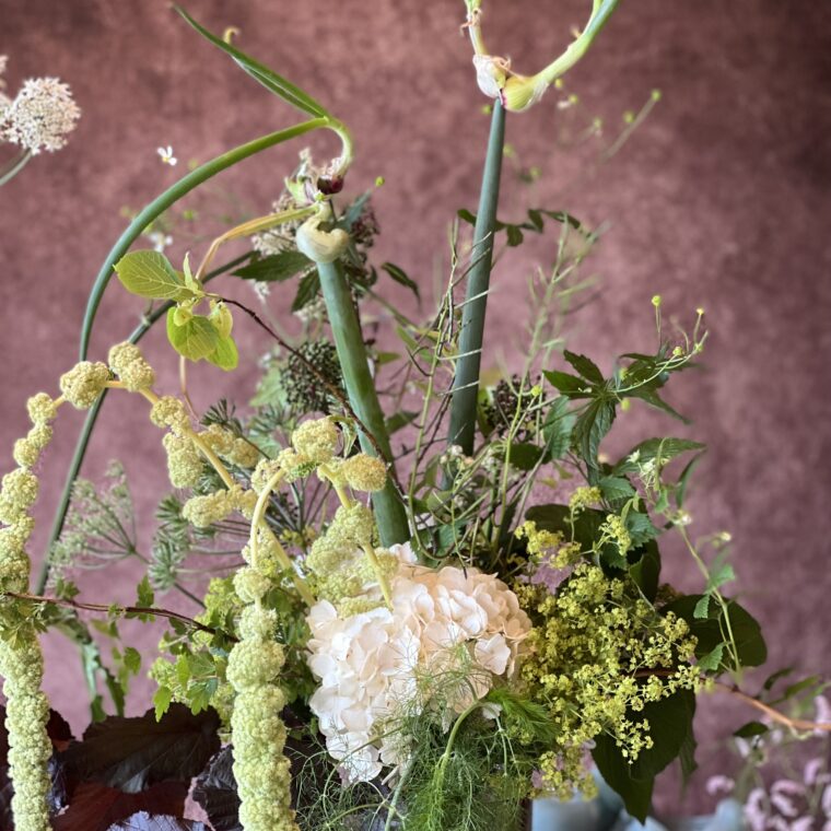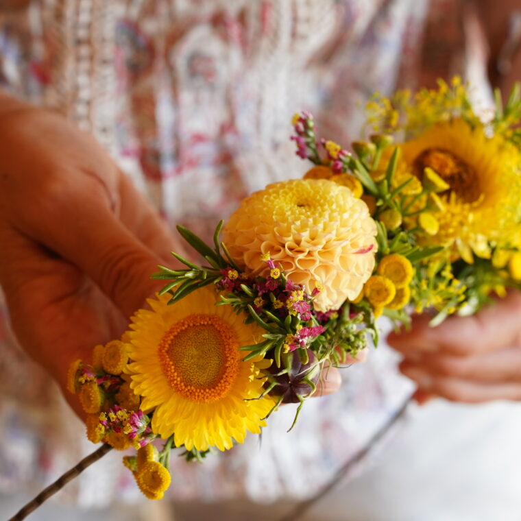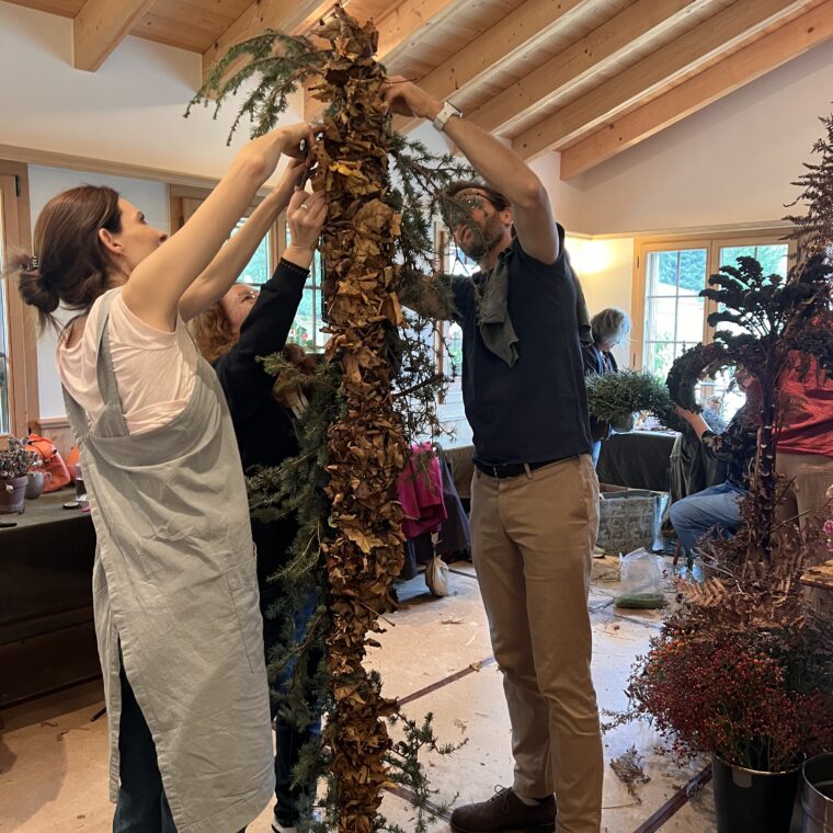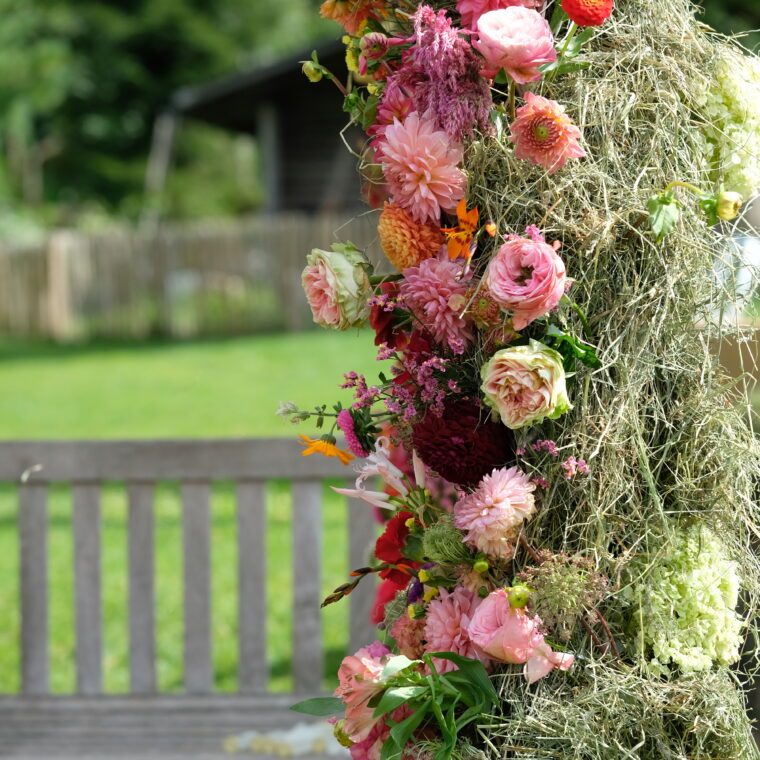 Aus einem Blütenmeer von saisonalen Blumen und selbst gepflückten Blumen gestaltest Du während den vier Tagen einen wildromantischen Blumenstrauss, eine wundervolle Tischdekoration, einen haltbaren Schmuck fürs Haus sowie im Team eine grosse Blumeninstallation.